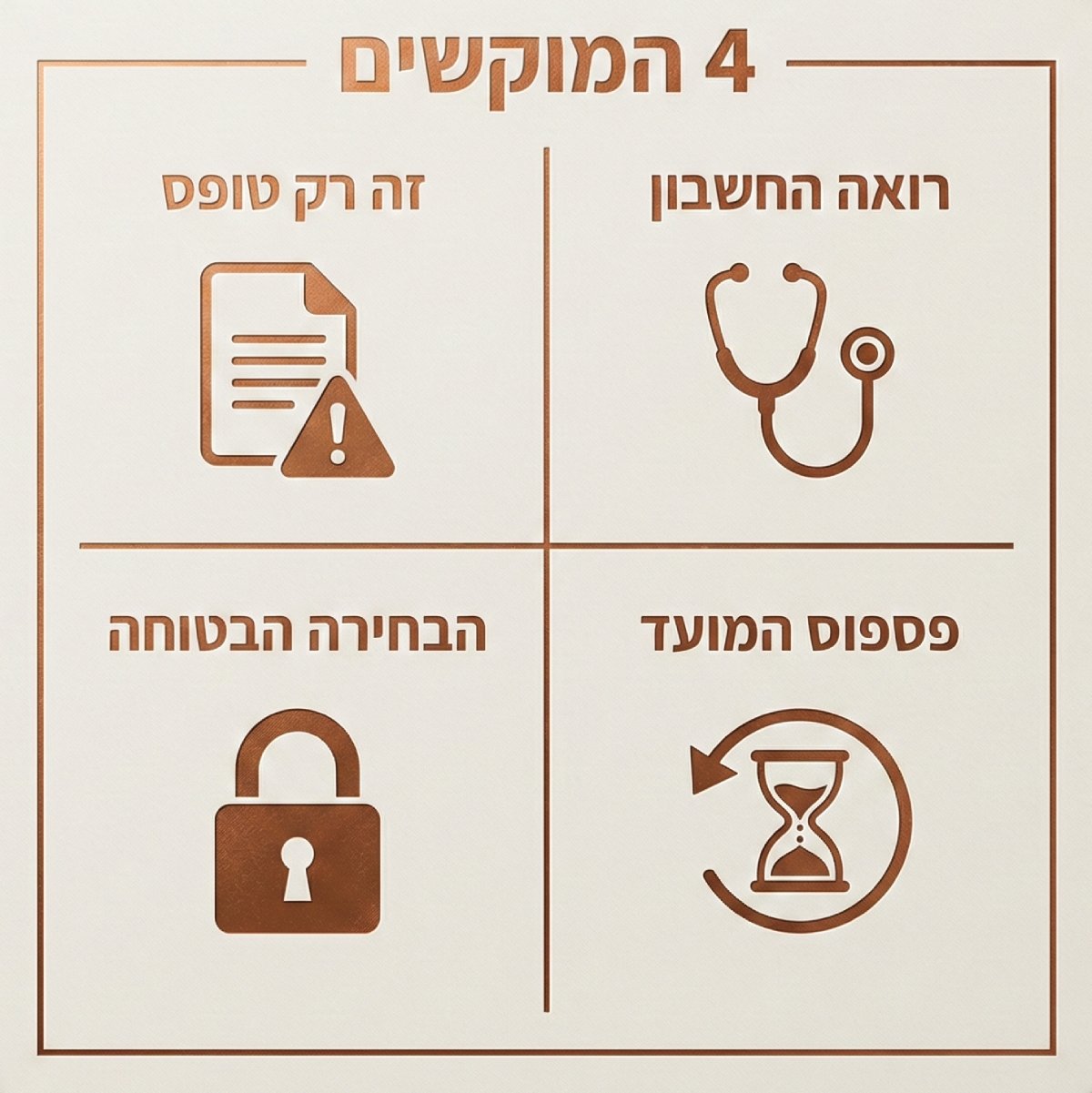 לפנות לרואה חשבון כללי בנושא קיבוע זכויות במס הכנסה זה כמו לבקש מרופא משפחה לבצע ניתוח לב פתוח. אתם צריכים מומחה שיודע לנתח את חוקי המיסוי בפרישה, מכיר את כל אפשרויות הניצול של סל הפטור, ומבין את המורכבות של קיבוע זכויות פנסיה תקציבית לעומת צוברת.